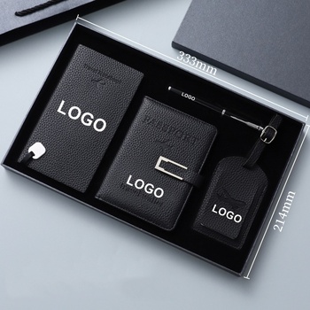 도매 사용자 정의 PU 가죽 여권 홀더 여행 가방 태그 여행 노트북 선물 상자 세트 펜 판촉 선물 세트
